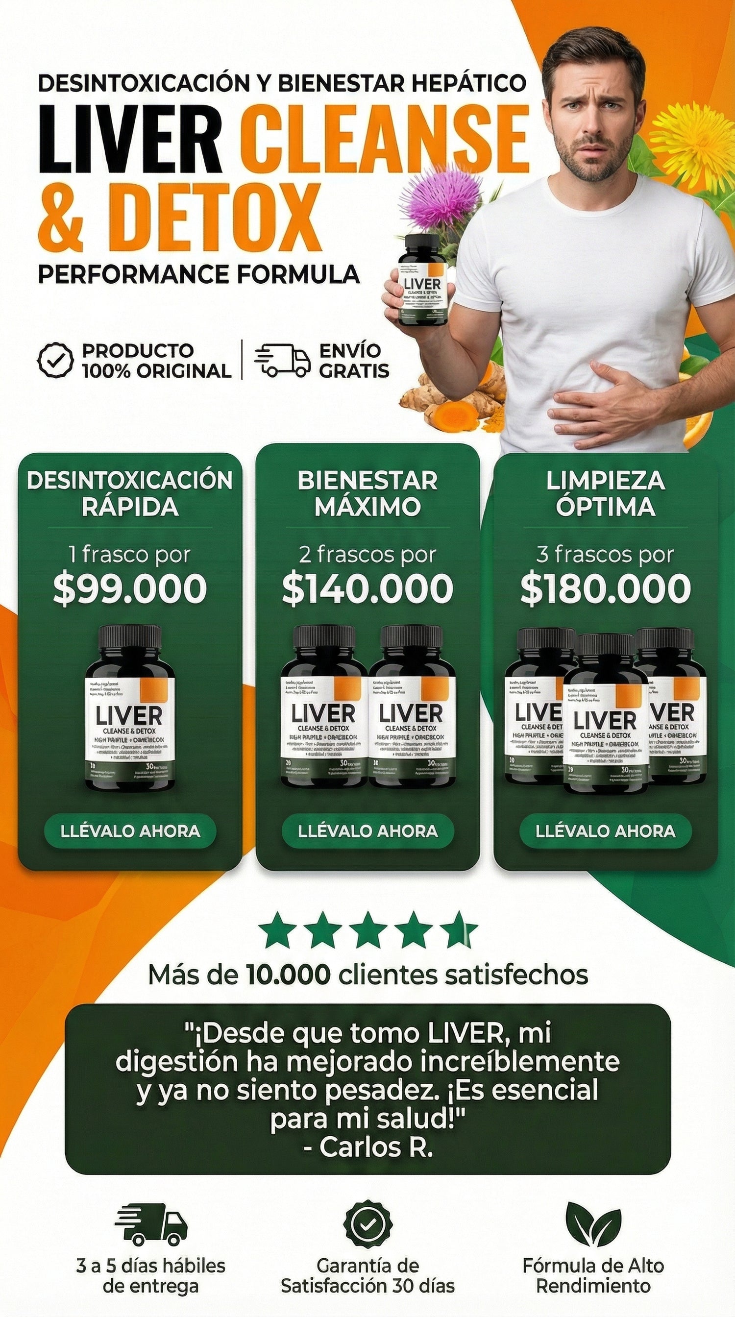 El Liver Cleanse Detox es un producto Americano que ayuda a limpiar y desintoxicar el hígado para personas que sufren de Hígado Graso, Digestión Lenta y Gases constantemente